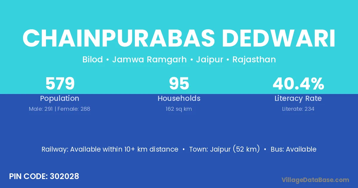According to Census 2011 information, the village code of Chainpurabas Dedwari village is 302028.