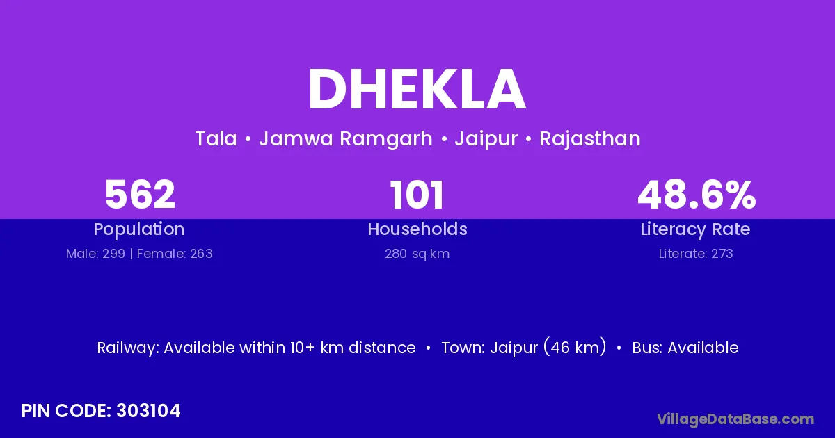 Jaipur (46 km) is the nearest town to Dhekla village for major economic activities and is located approximately 46 km away.