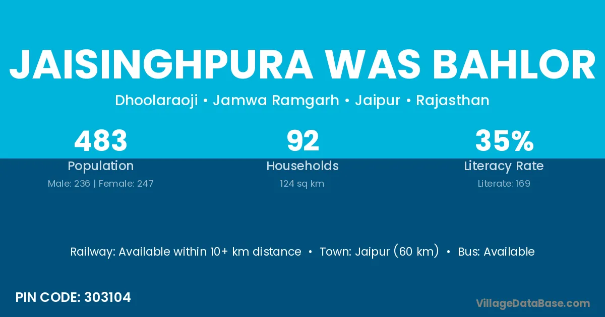 Jaisinghpura Was Bahlor village has a total population of 483 people, of which 236 are males and 247 are females.
