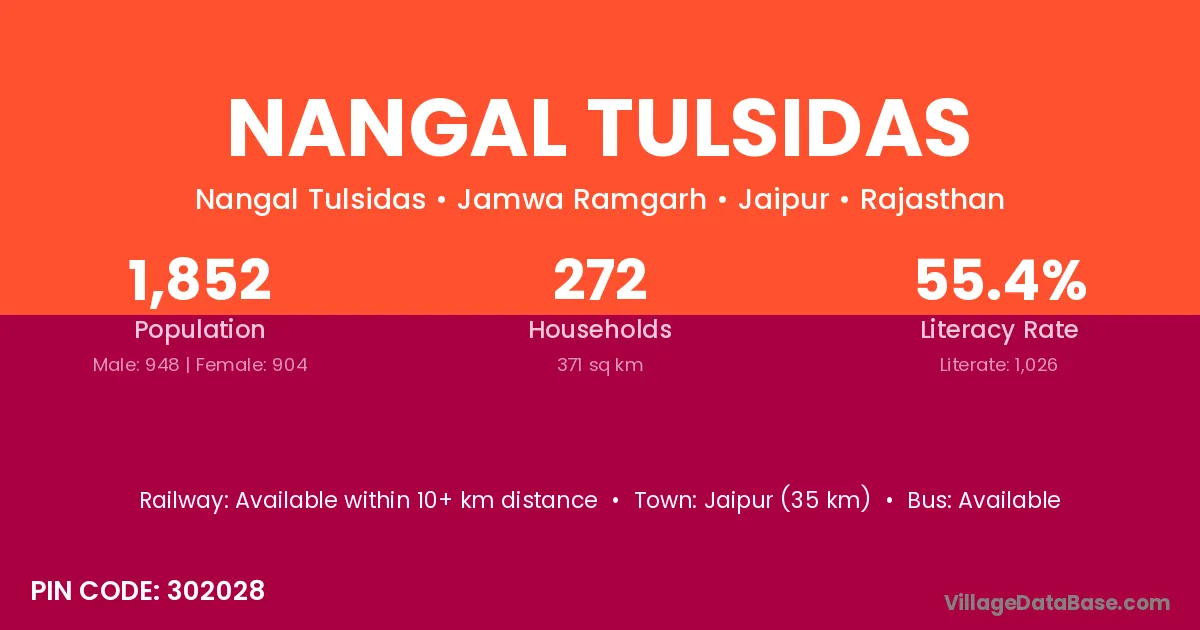 Jaipur (35 km) is the nearest town to Nangal Tulsidas village for major economic activities and is located approximately 35 km away.