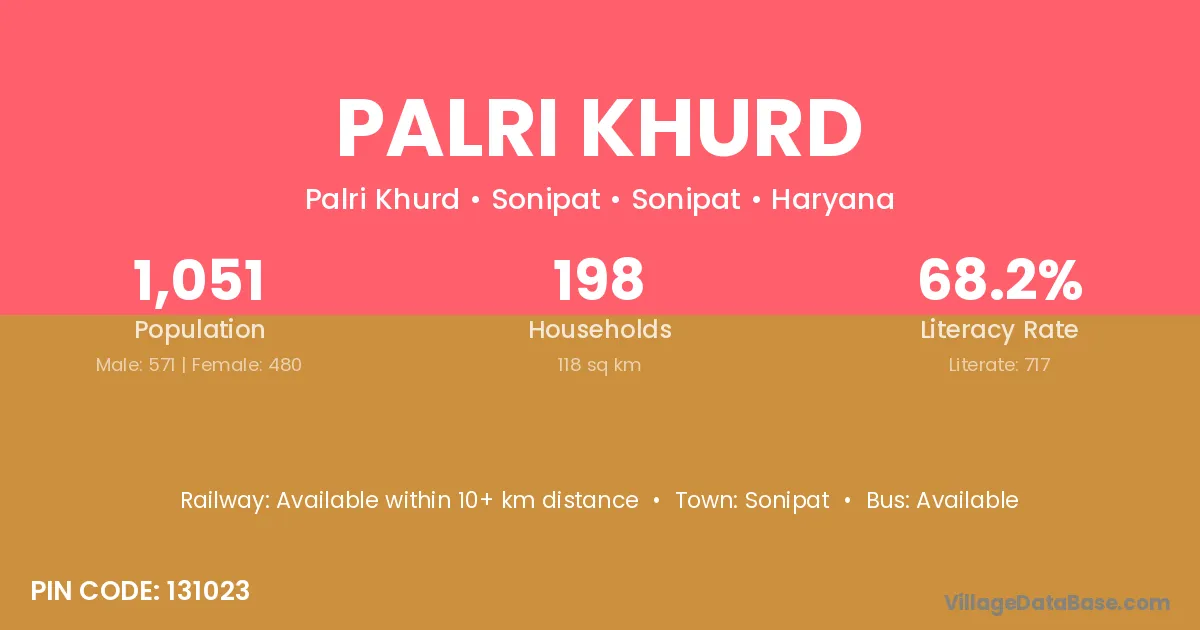 Palri Khurd village has a total population of 790 people, of which 414 are males and 376 are females.