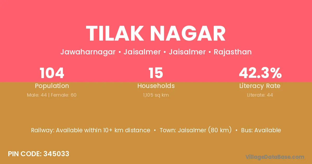 Jaipur (40 km) is the nearest town to Tilak Nagar village for major economic activities and is located approximately 40 km away.