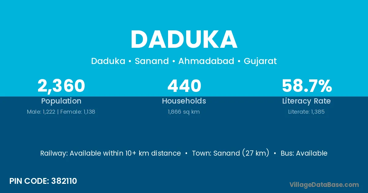 Kotputli (13 km) is the nearest town to Daduka village for major economic activities and is located approximately 13 km away.