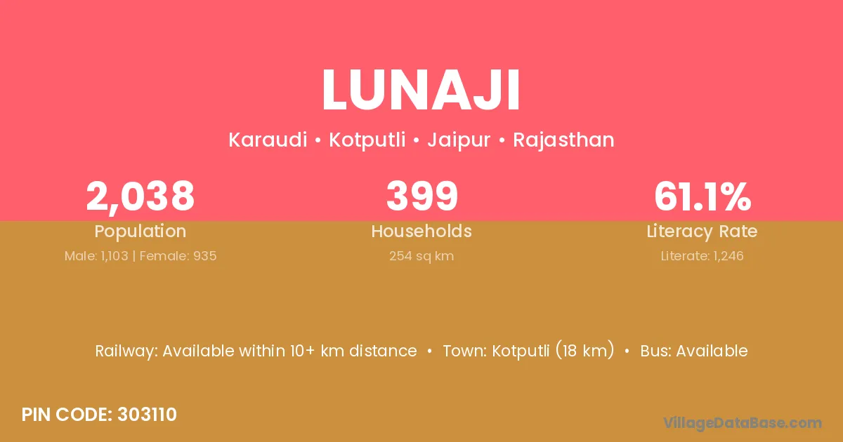 Kotputli (18 km) is the nearest town to Lunaji village for major economic activities and is located approximately 18 km away.