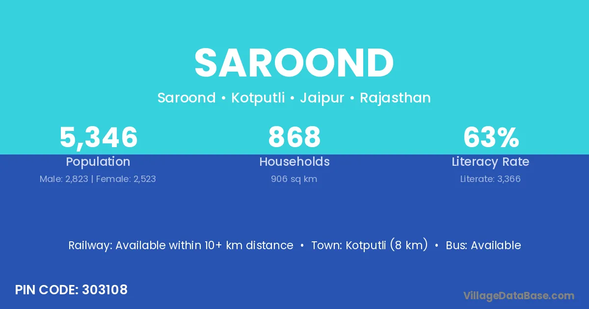 Kotputli (8 km) is the nearest town to Saroond village for major economic activities and is located approximately 8 km away.