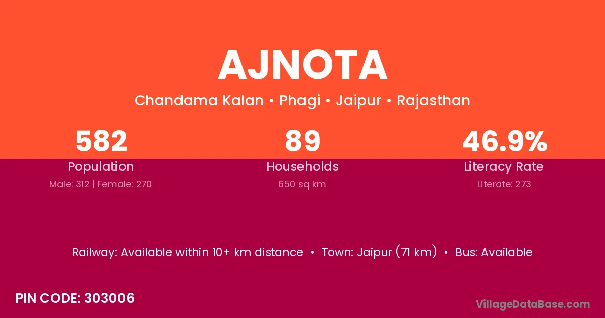 Jaipur (71 km) is the nearest town to Ajnota village for major economic activities and is located approximately 71 km away.