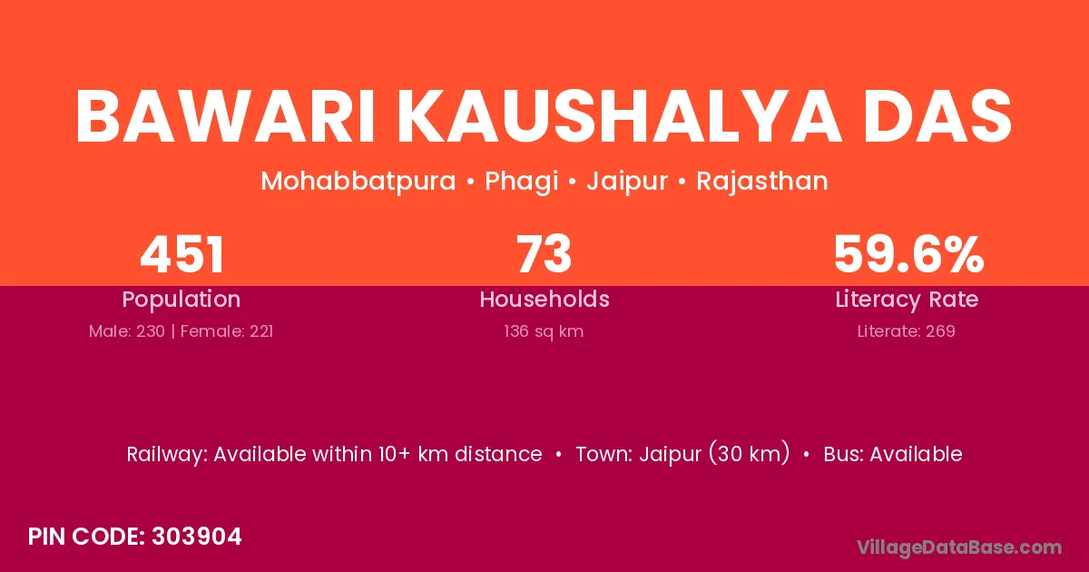Bawari Kaushalya Das village has a total population of 451 people, of which 230 are males and 221 are females.