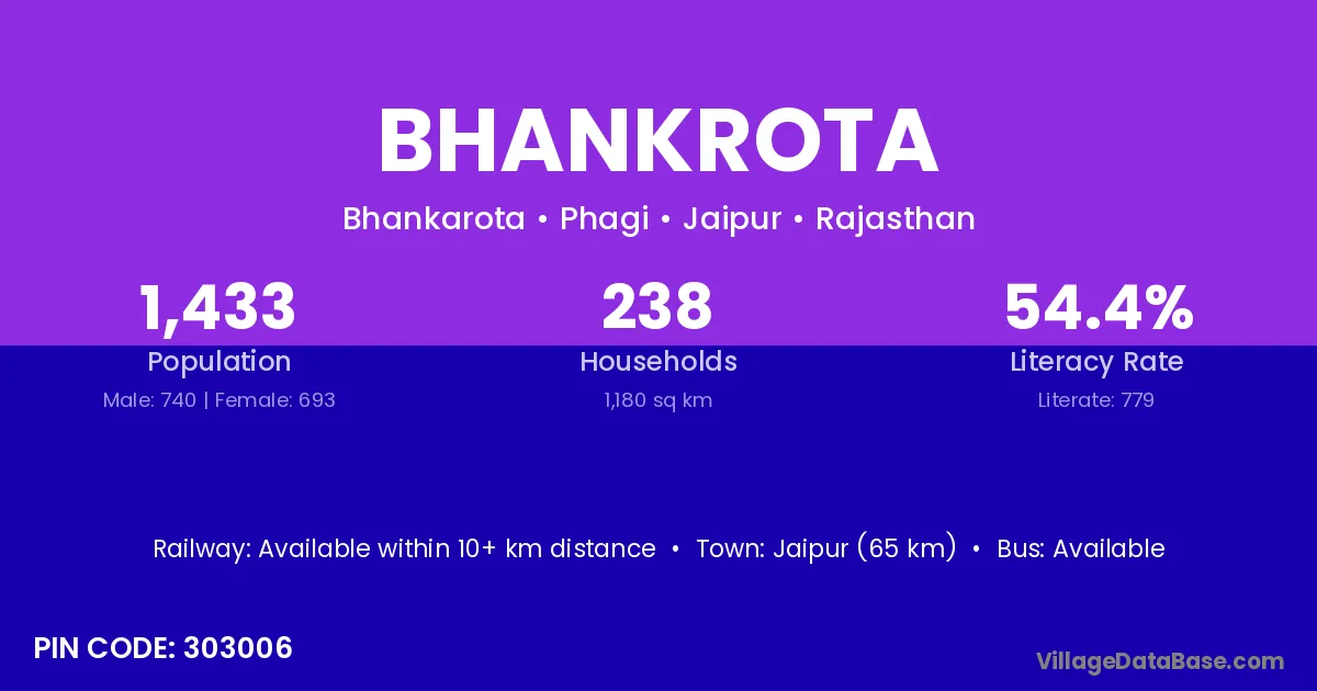 Bhankrota village has a total population of 1,433 people, of which 740 are males and 693 are females.