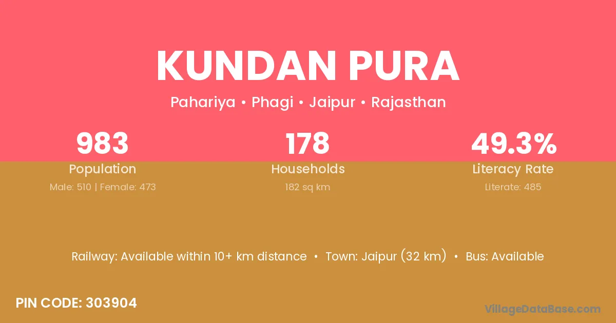 Jaipur (32 km) is the nearest town to Kundan Pura village for major economic activities and is located approximately 32 km away.