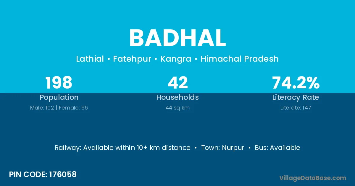 The literacy rate of Badhal village is 62.98%. Male literacy stands at 74.50% and female literacy at 50.42%.