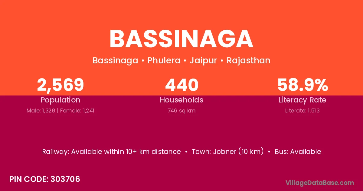 Jobner (10 km) is the nearest town to Bassinaga village for major economic activities and is located approximately 10 km away.