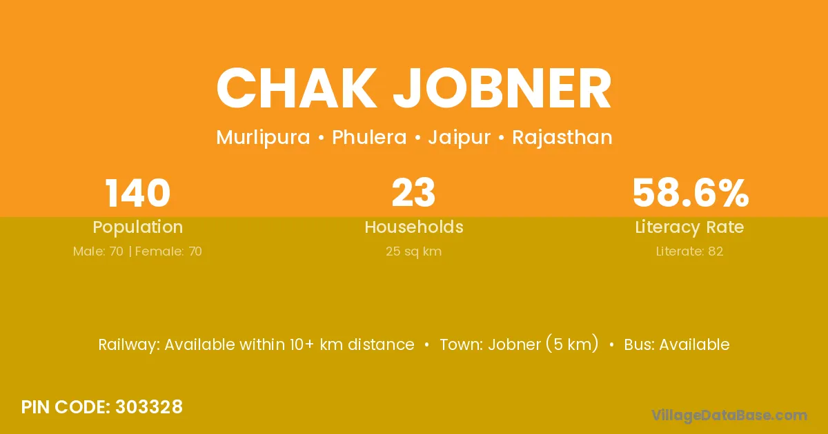 Jobner (5 km) is the nearest town to Chak Jobner village for major economic activities and is located approximately 5 km away.
