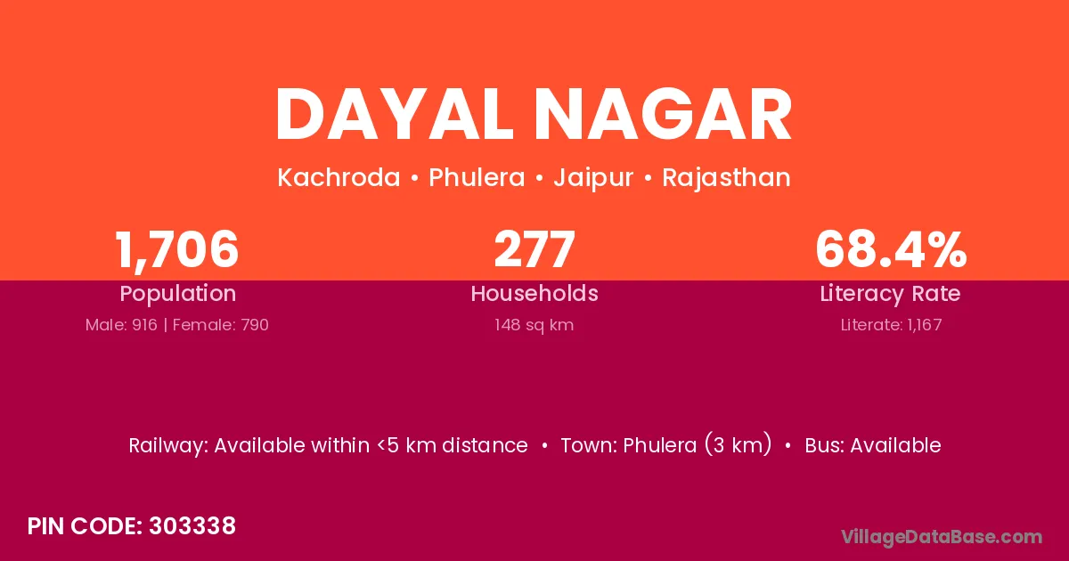 Phulera (3 km) is the nearest town to Dayal Nagar village for major economic activities and is located approximately 3 km away.
