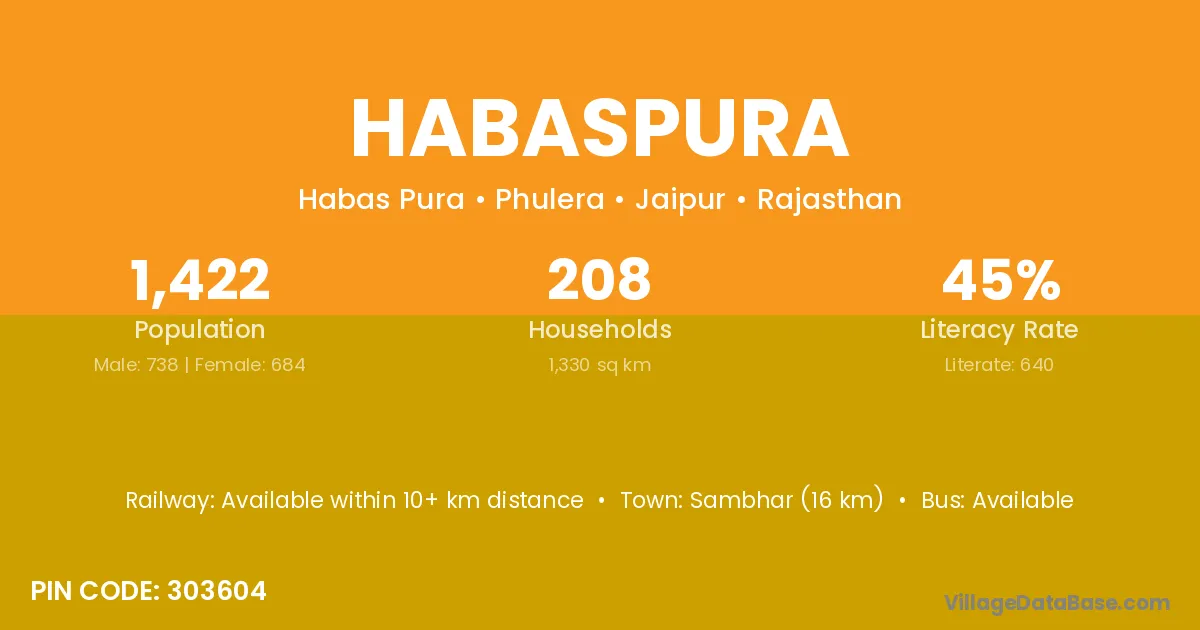 Sambhar (16 km) is the nearest town to Habaspura village for major economic activities and is located approximately 16 km away.