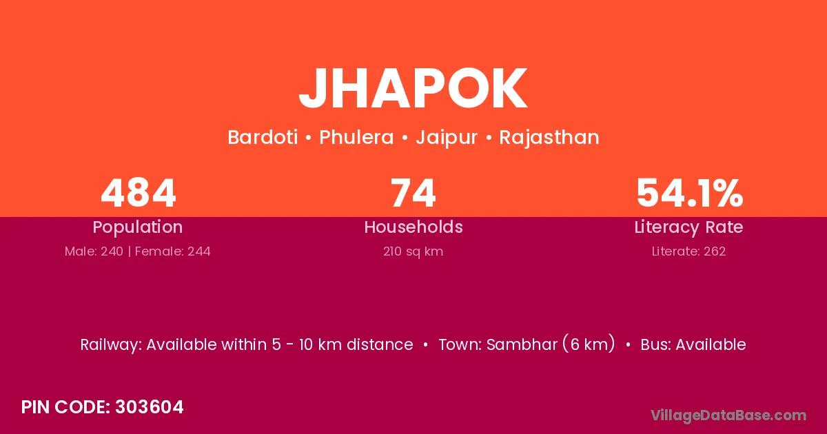 Sambhar (6 km) is the nearest town to Jhapok village for major economic activities and is located approximately 6 km away.