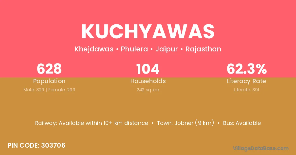 Jobner (9 km) is the nearest town to Kuchyawas village for major economic activities and is located approximately 9 km away.