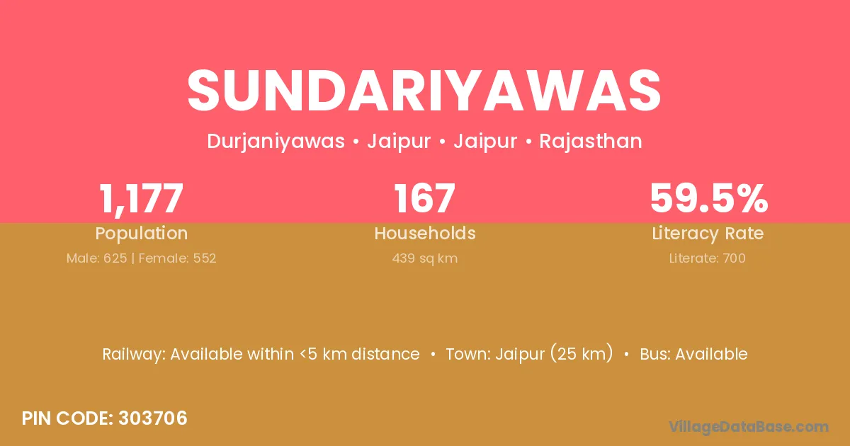 Jaipur (42 km) is the nearest town to Sundariyawas village for major economic activities and is located approximately 42 km away.