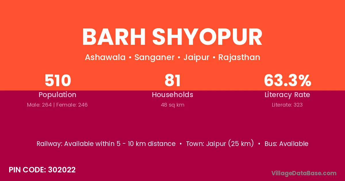 Jaipur (25 km) is the nearest town to Barh Shyopur village for major economic activities and is located approximately 25 km away.