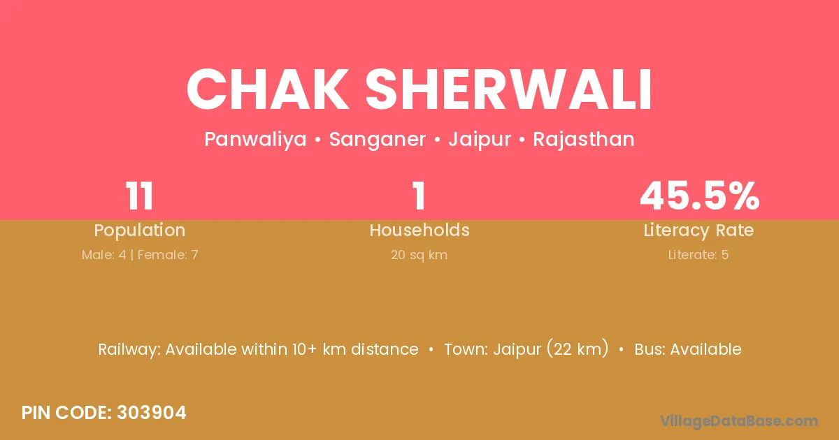 Chak Sherwali village has a total population of 11 people, of which 4 are males and 7 are females.