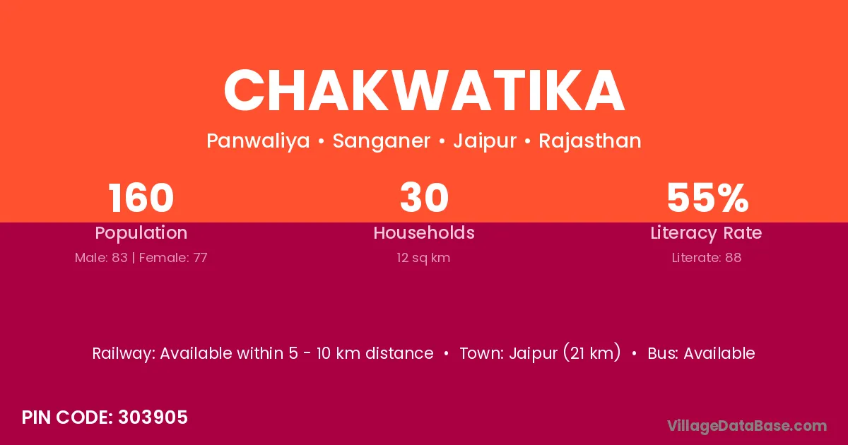 Jaipur (21 km) is the nearest town to Chakwatika village for major economic activities and is located approximately 21 km away.