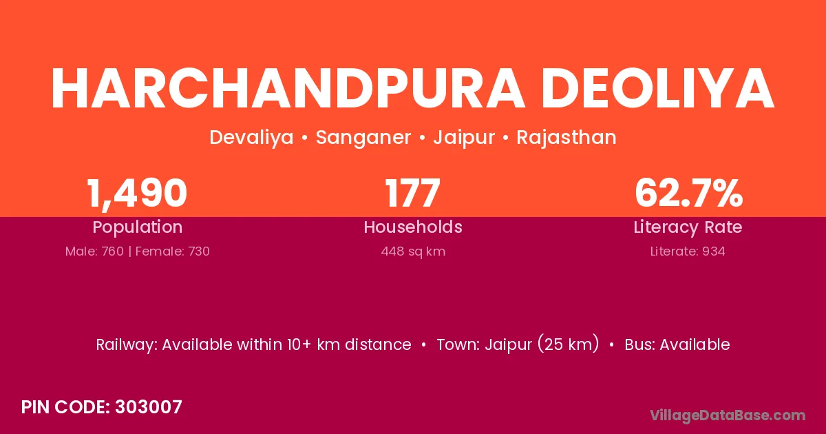 Jaipur (25 km) is the nearest town to Harchandpura Deoliya village for major economic activities and is located approximately 25 km away.