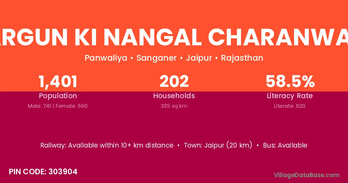 Hargun Ki Nangal Charanwala village has a total population of 1,401 people, of which 741 are males and 660 are females.