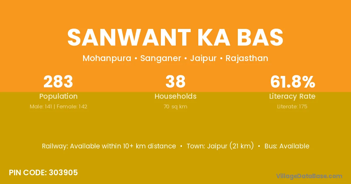 Sanwant Ka Bas village has a total population of 283 people, of which 141 are males and 142 are females.