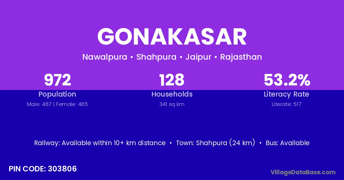 Shahpura (24 km) is the nearest town to Gonakasar village for major economic activities and is located approximately 24 km away.