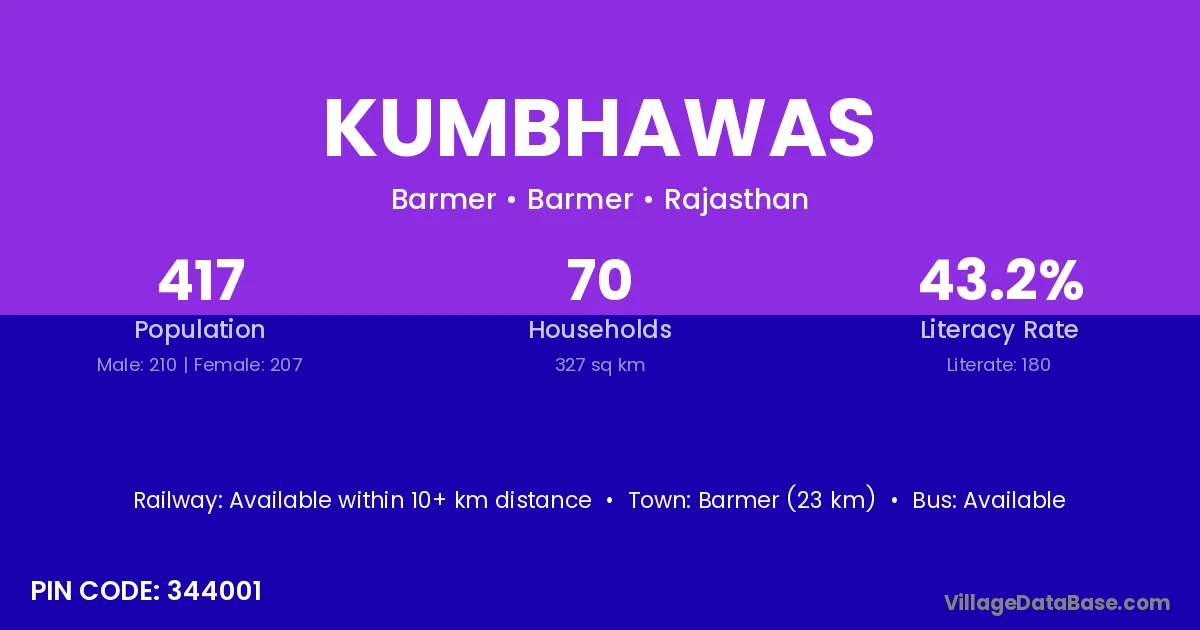 According to Census 2011 information, the village code of Kumbhawas village is 303103.
