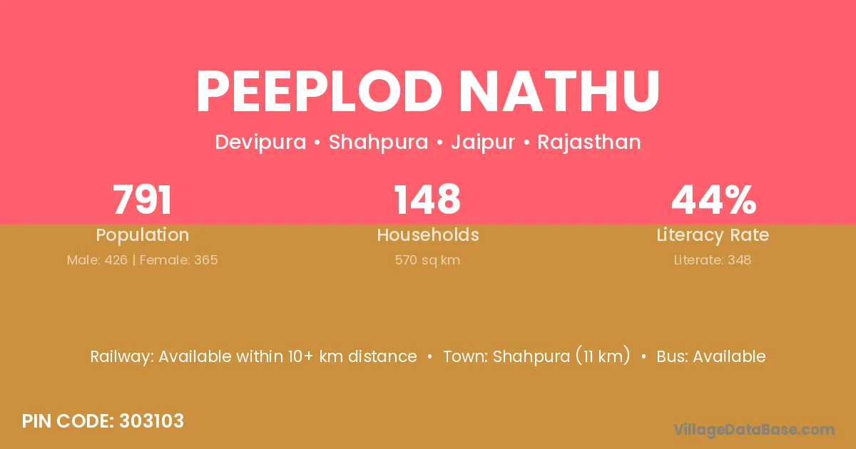 Shahpura (11 km) is the nearest town to Peeplod Nathu village for major economic activities and is located approximately 11 km away.
