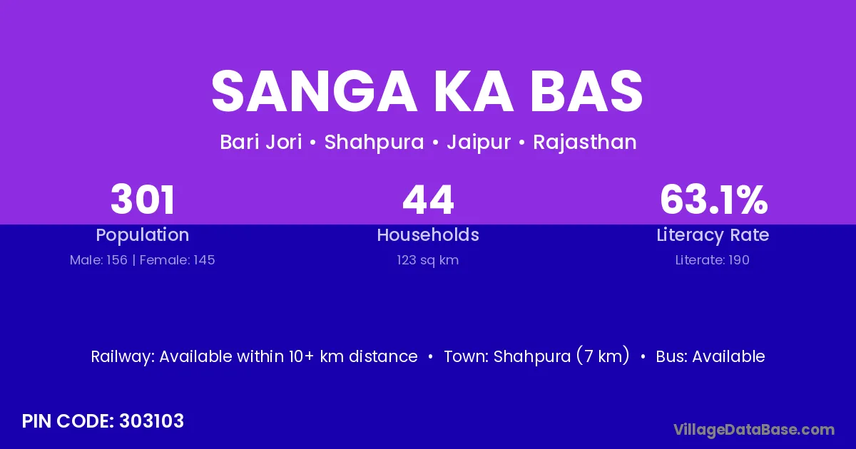 Sanga Ka Bas village has a total population of 301 people, of which 156 are males and 145 are females.