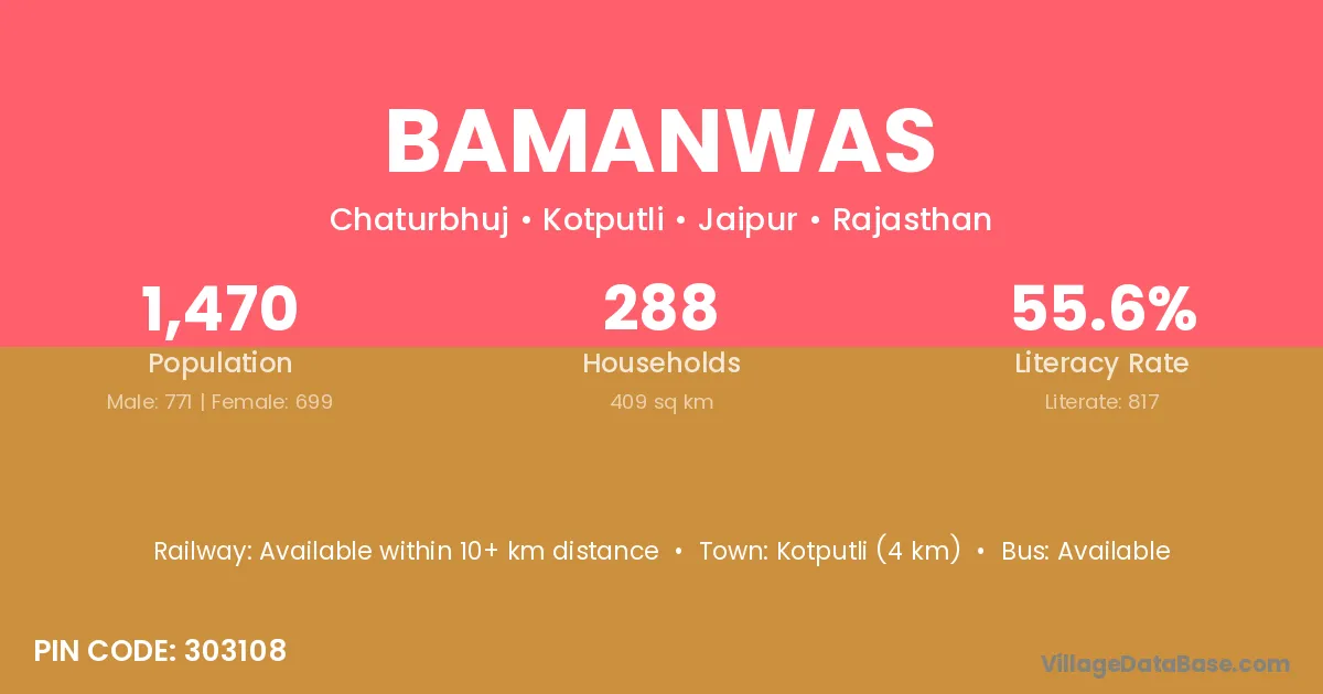 Viratnagar (35 km) is the nearest town to Bamanwas village for major economic activities and is located approximately 35 km away.