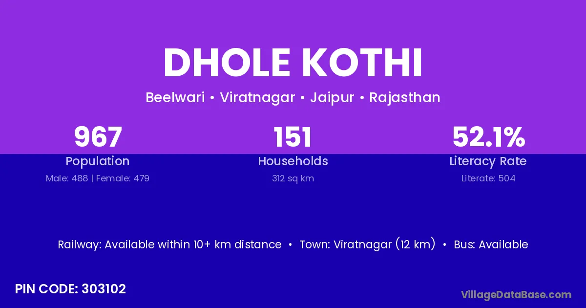 Dhole Kothi village has a total population of 967 people, of which 488 are males and 479 are females.