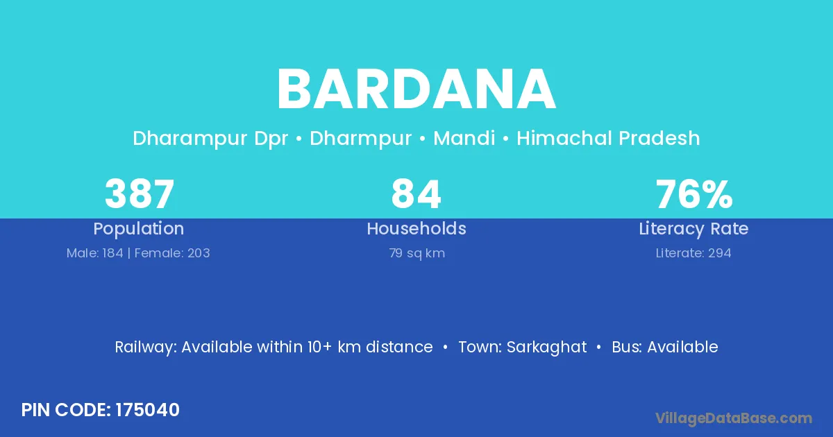 Pokaran (43 km) is the nearest town to Bardana village for major economic activities and is located approximately 43 km away.