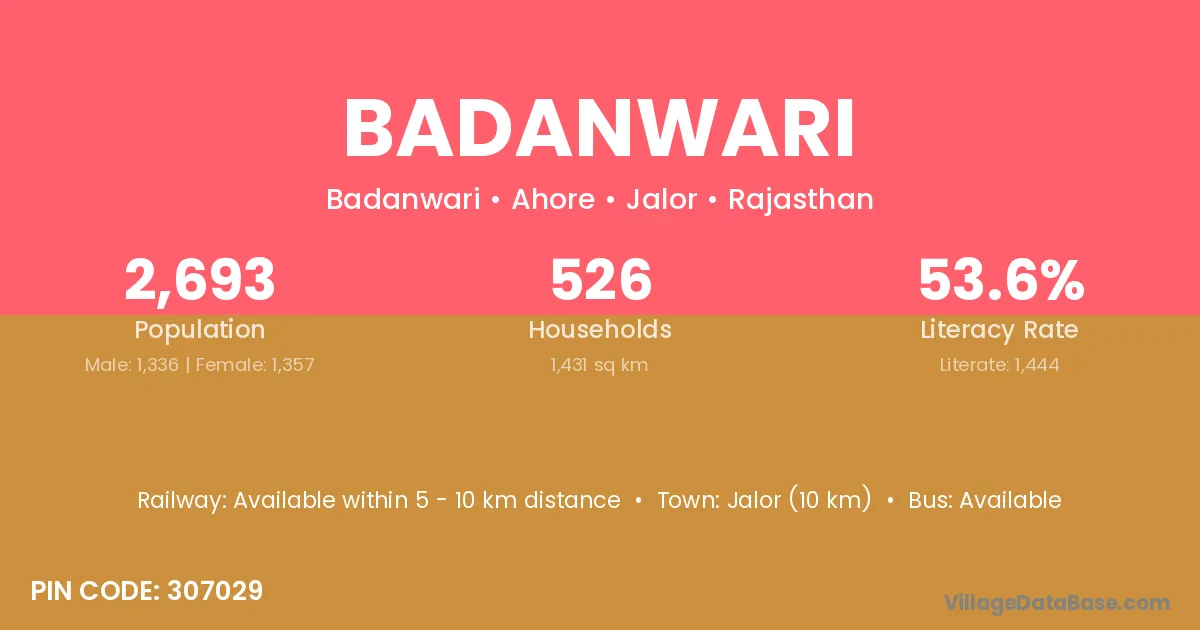 Jalor (10 km) is the nearest town to Badanwari village for major economic activities and is located approximately 10 km away.