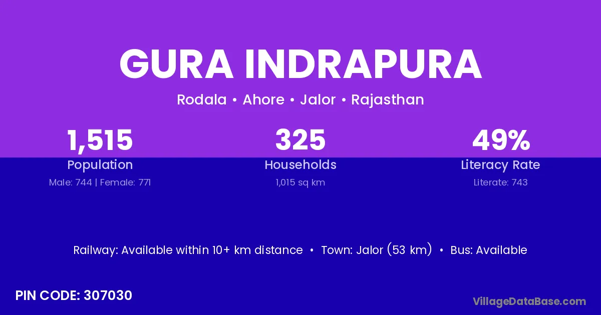Gura Indrapura village is located in the Ahore Tehsil of the Jalor district in Rajasthan .