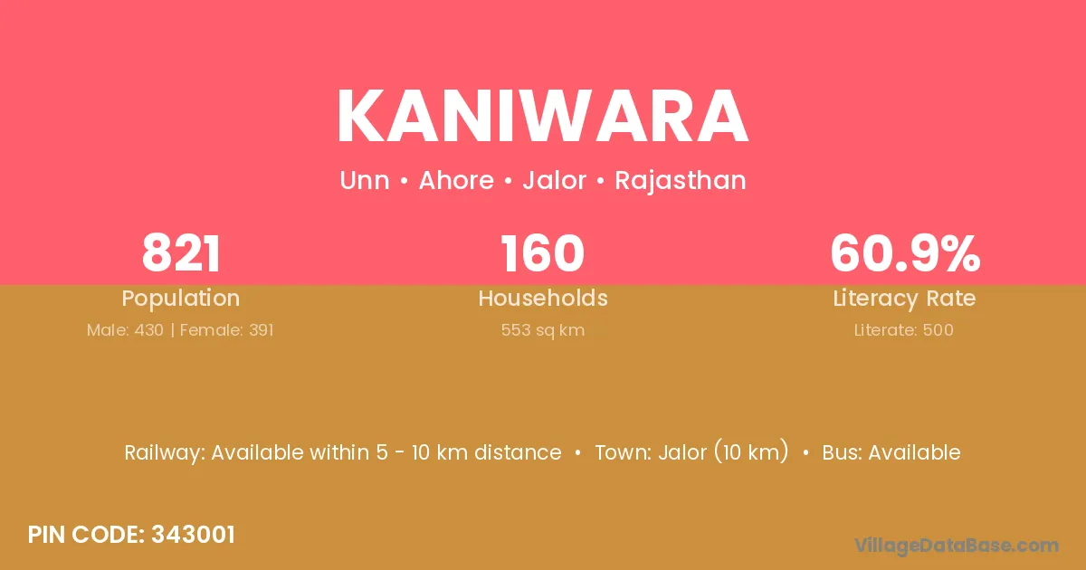 Jalor (10 km) is the nearest town to Kaniwara village for major economic activities and is located approximately 10 km away.