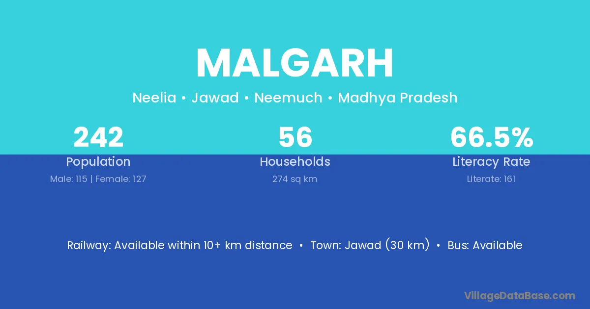 Pali (45 km) is the nearest town to Malgarh village for major economic activities and is located approximately 45 km away.
