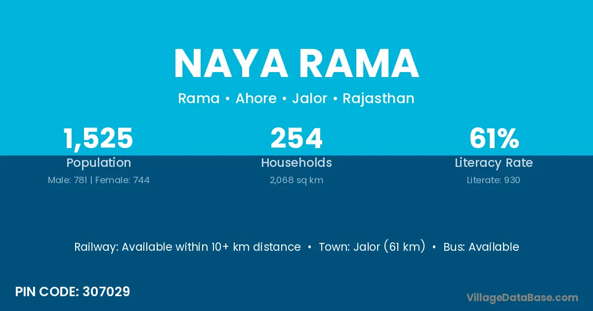 Jalor (61 km) is the nearest town to Naya Rama village for major economic activities and is located approximately 61 km away.