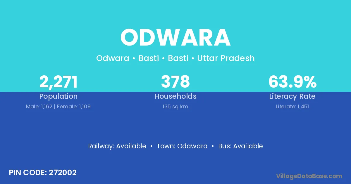 Odwara village has a total population of 2,169 people, of which 1,031 are males and 1,138 are females.