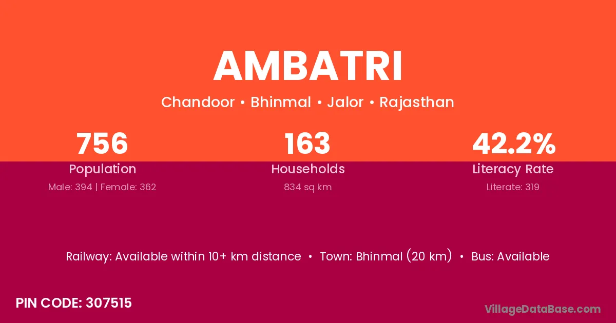 Bhinmal (20 km) is the nearest town to Ambatri village for major economic activities and is located approximately 20 km away.