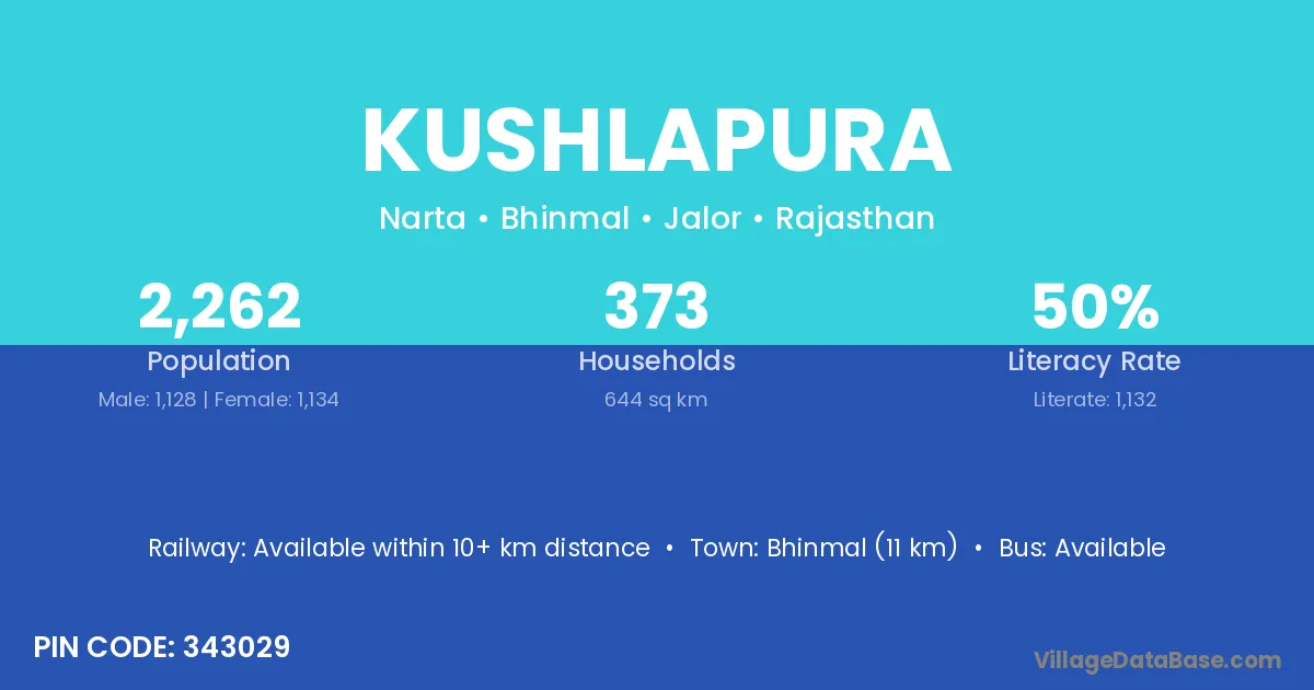 Bhinmal (11 km) is the nearest town to Kushlapura village for major economic activities and is located approximately 11 km away.