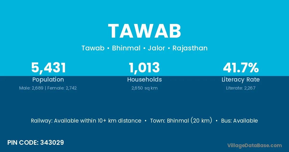 Bhinmal (20 km) is the nearest town to Tawab village for major economic activities and is located approximately 20 km away.