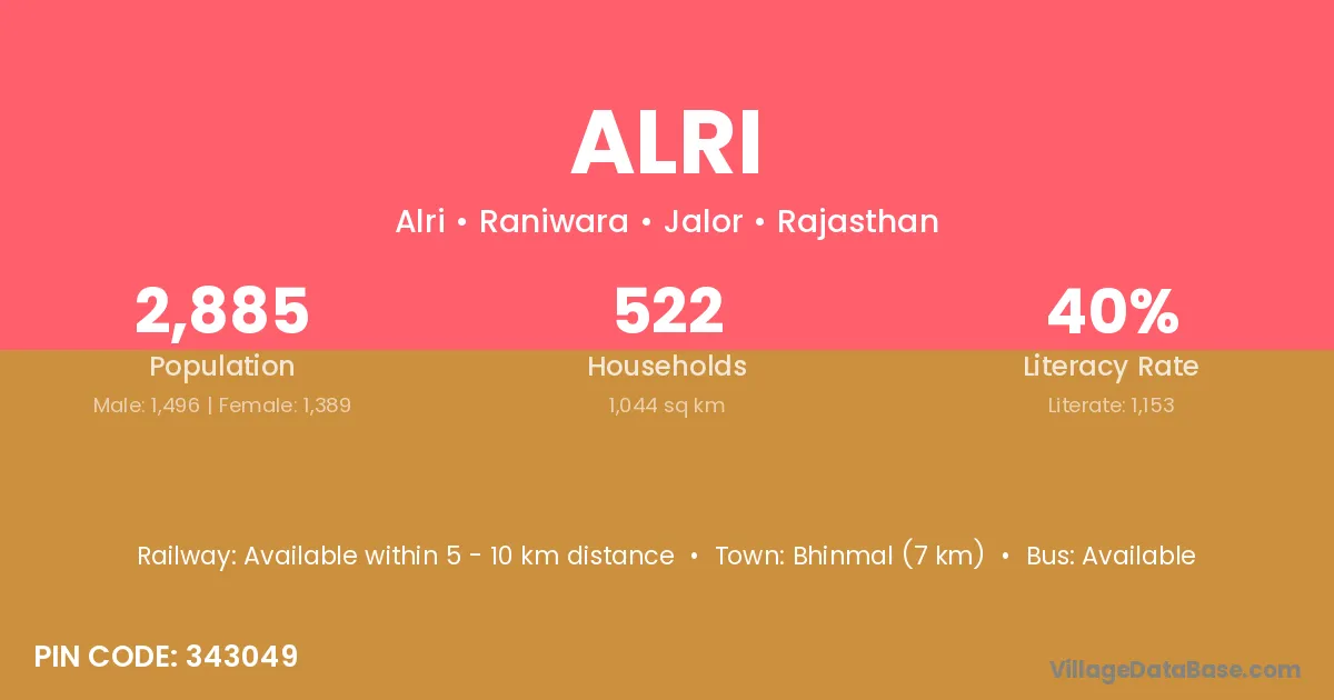 Bhinmal (7 km) is the nearest town to Alri village for major economic activities and is located approximately 7 km away.