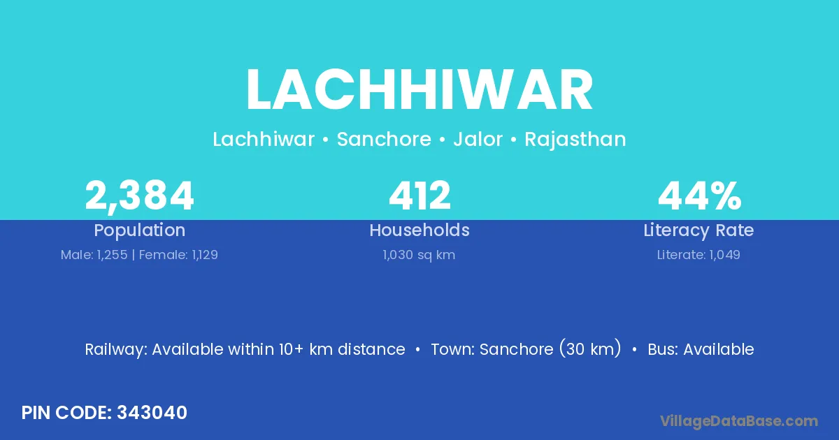Sanchore (30 km) is the nearest town to Lachhiwar village for major economic activities and is located approximately 30 km away.