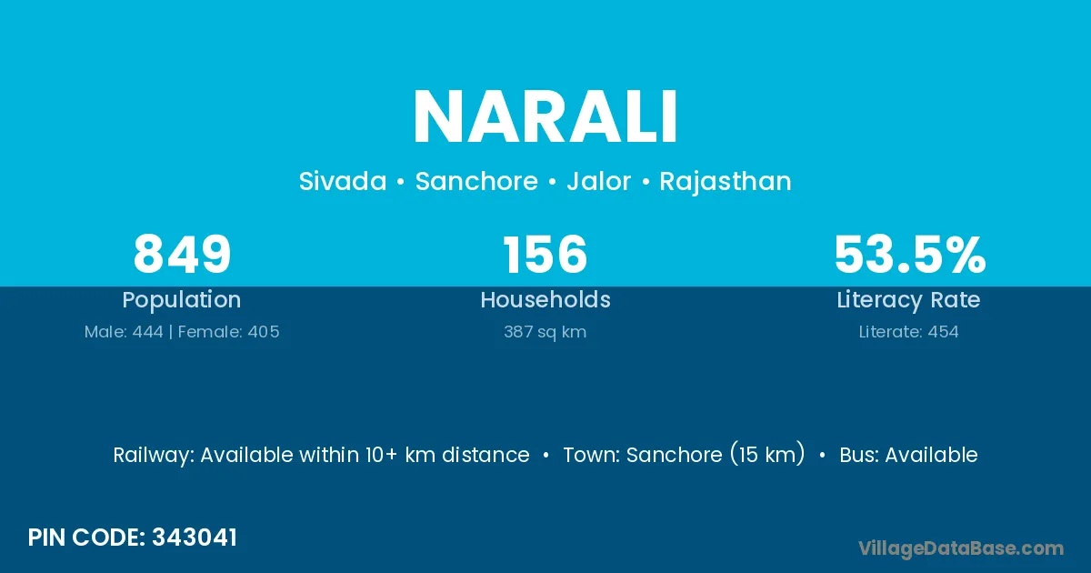 Sanchore (15 km) is the nearest town to Narali village for major economic activities and is located approximately 15 km away.