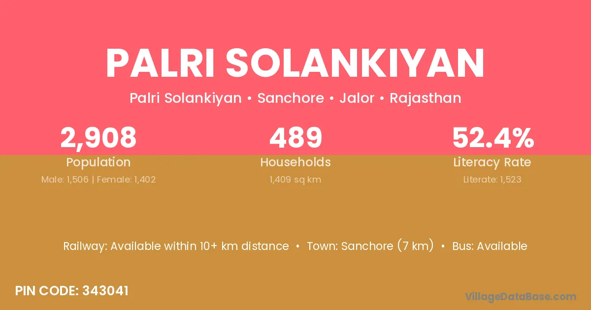 Sanchore (7 km) is the nearest town to Palri Solankiyan village for major economic activities and is located approximately 7 km away.