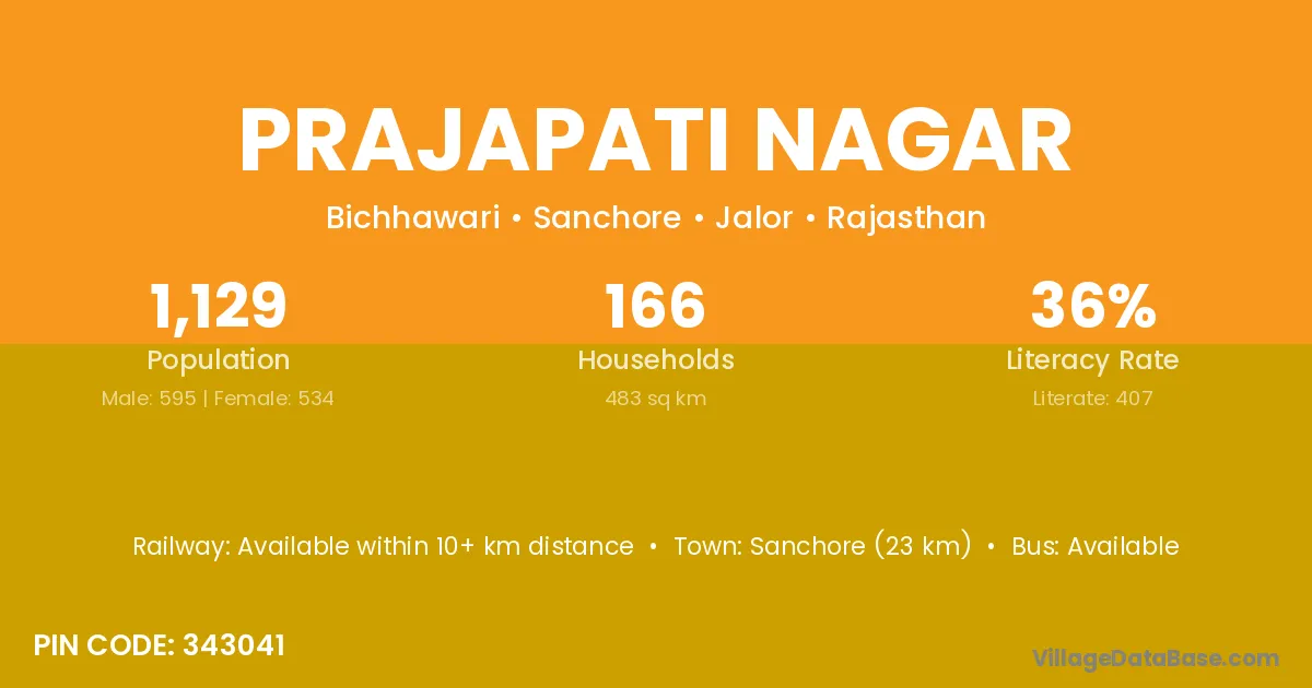 Sanchore (23 km) is the nearest town to Prajapati Nagar village for major economic activities and is located approximately 23 km away.
