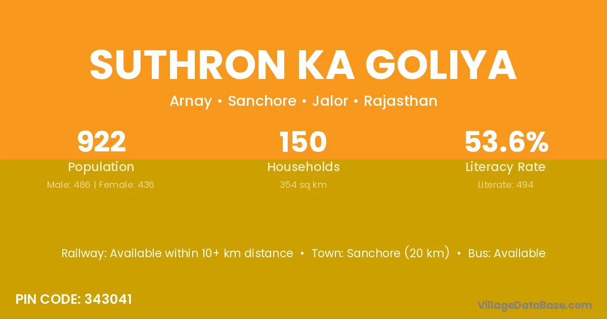 According to Census 2011 information, the village code of Suthron Ka Goliya village is 343041.