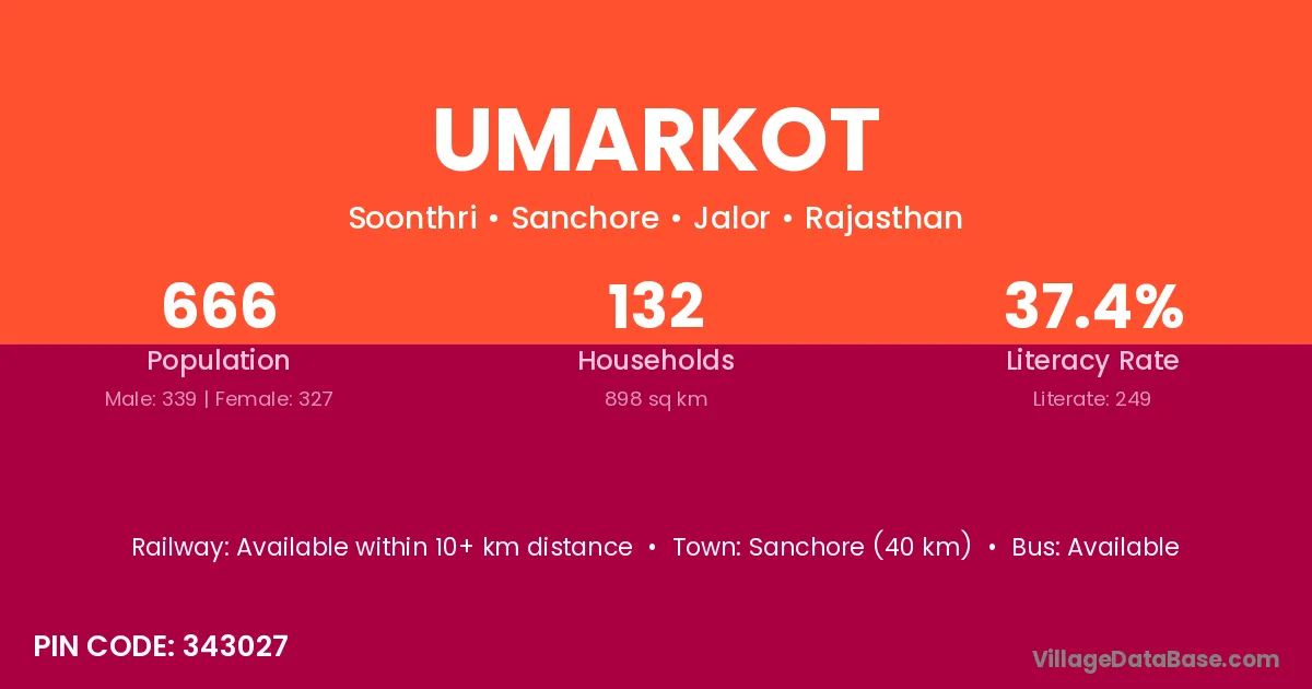 Sanchore (40 km) is the nearest town to Umarkot village for major economic activities and is located approximately 40 km away.